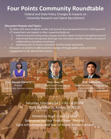 Get the insider perpective on how current policy is impacting research and recruitment at UT, with discussion of how we can use our voices to effect change.